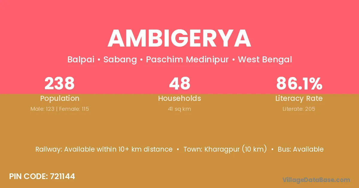 Ambigerya village is located in the Sabang Subdivision of the Paschim Medinipur district in West Bengal .