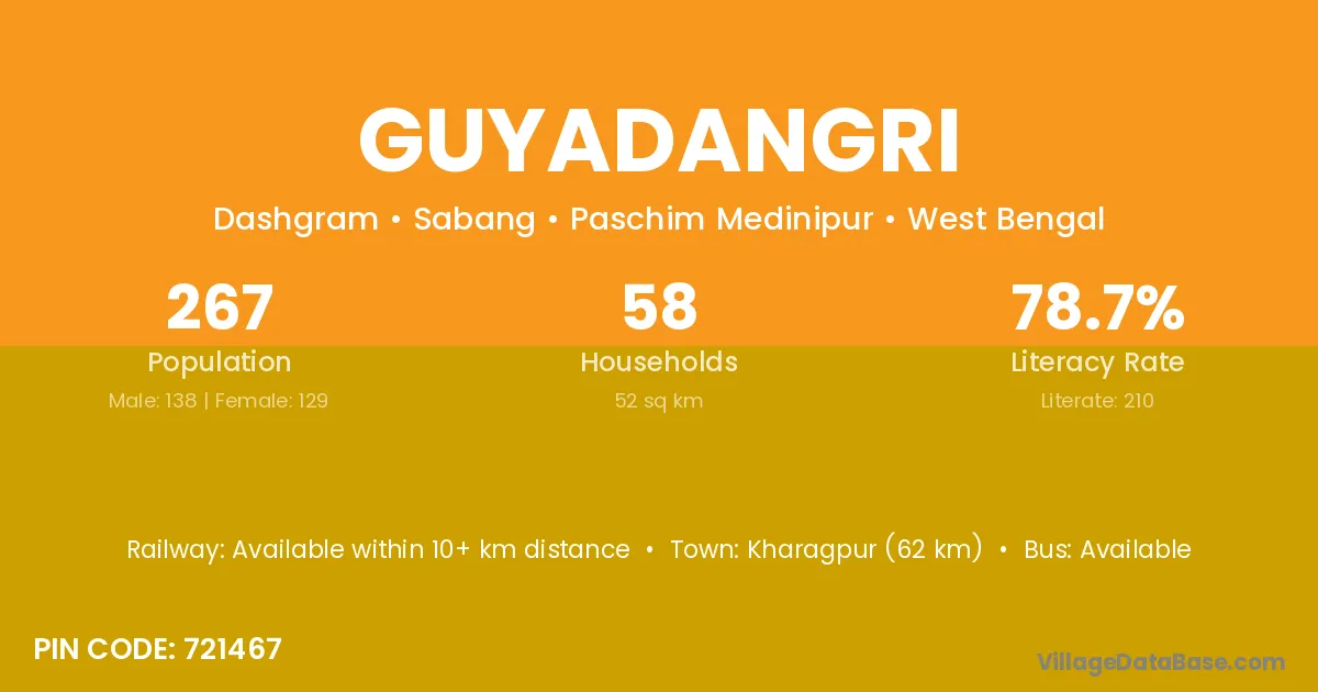 According to Census 2011 information, the village code of Guyadangri village is 721467.