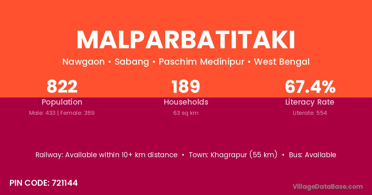 Khagrapur (55 km) is the nearest town to Malparbatitaki village for major economic activities and is located approximately 55 km away.