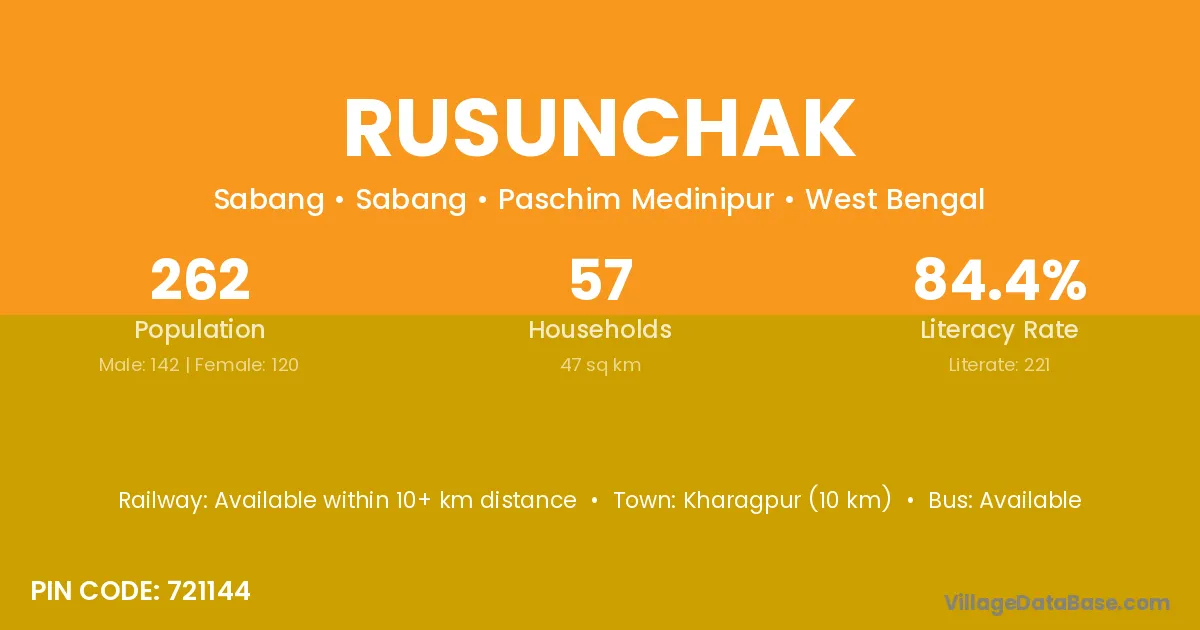 According to Census 2011 information, the village code of Rusunchak village is 721144.