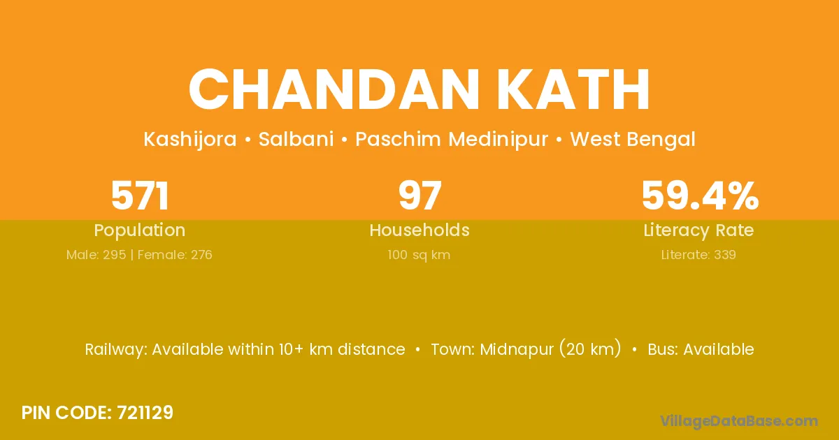 Midnapur (20 km) is the nearest town to Chandan Kath village for major economic activities and is located approximately 20 km away.