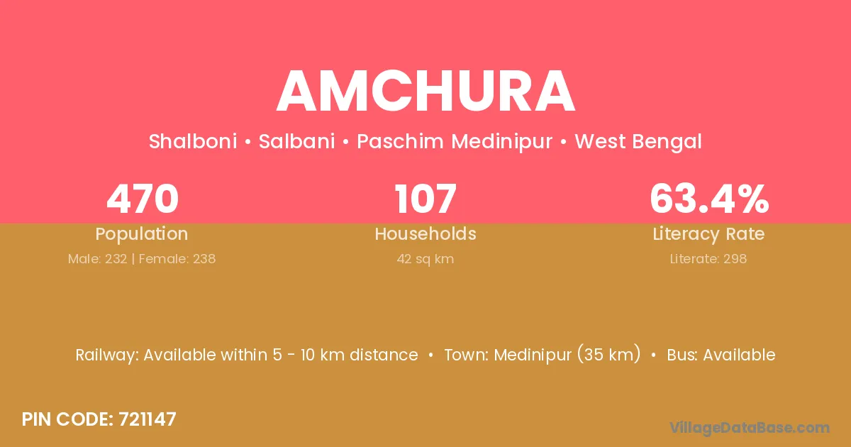 Amchura village is located in the Salbani Subdivision of the Paschim Medinipur district in West Bengal.