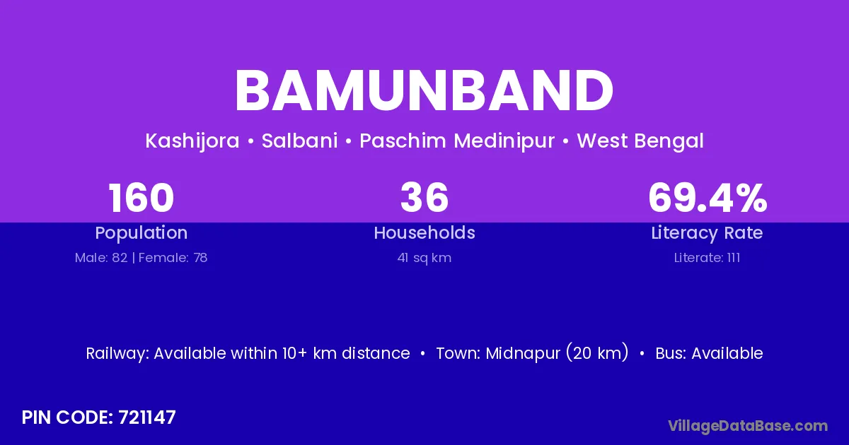 Midnapur (20 km) is the nearest town to Bamunband village for major economic activities and is located approximately 20 km away.