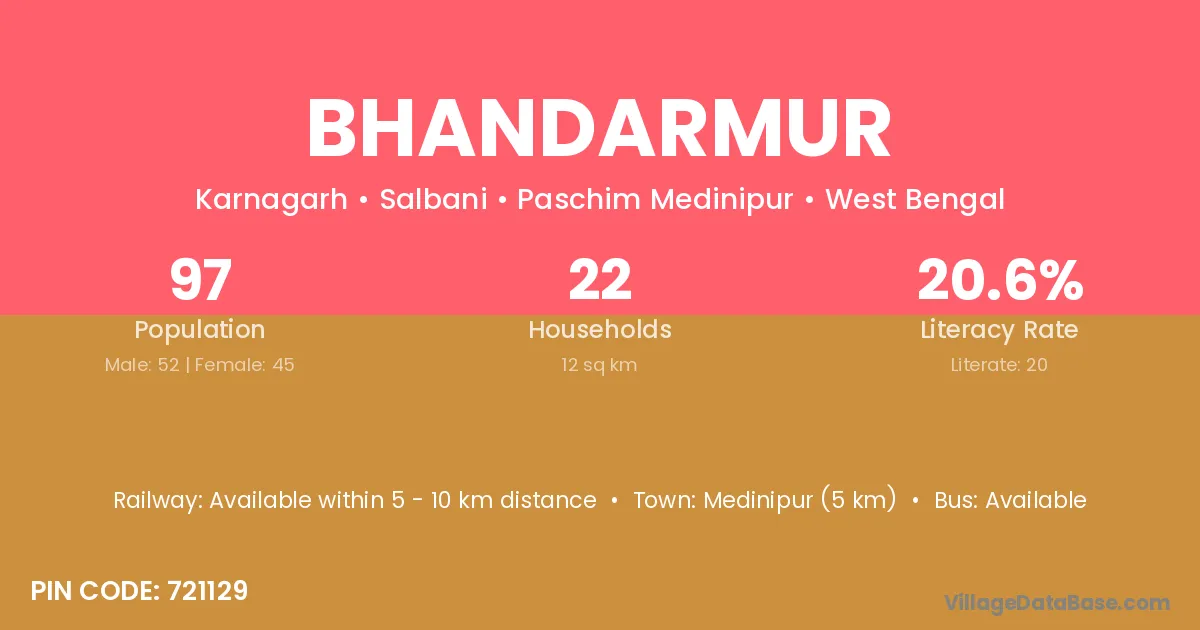 Medinipur (5 km) is the nearest town to Bhandarmur village for major economic activities and is located approximately 5 km away.