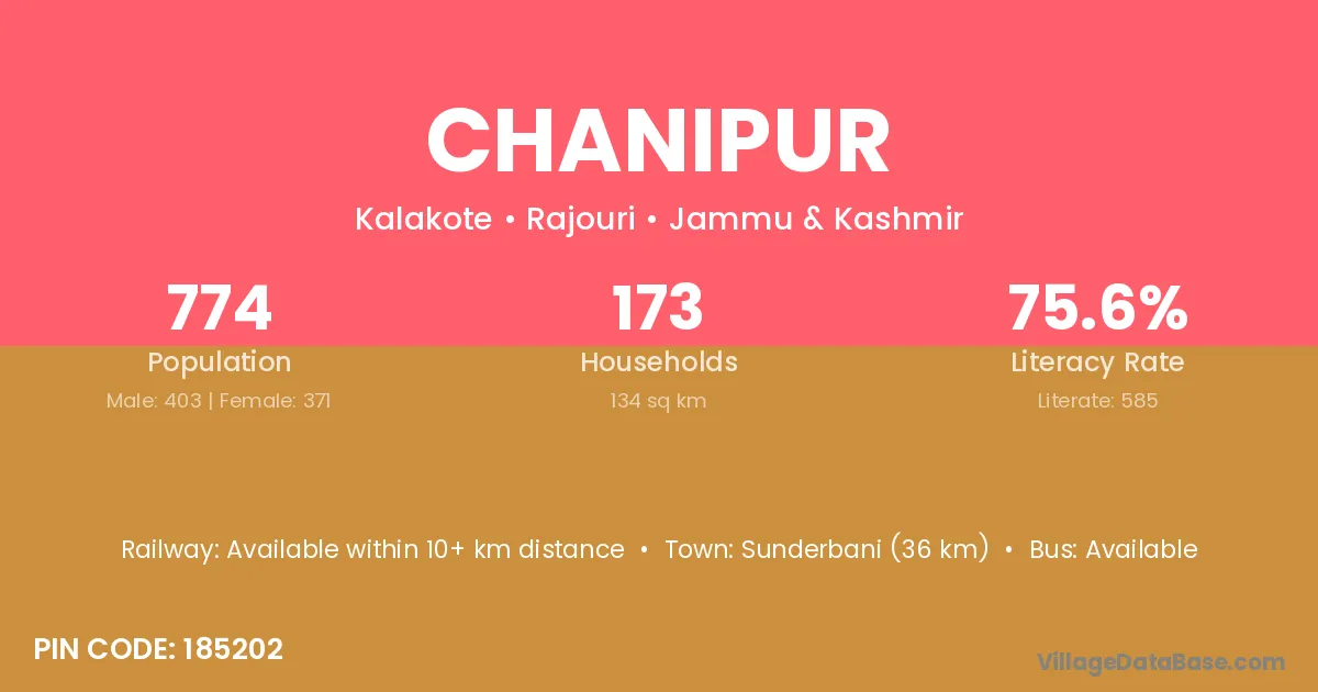Chanipur village has a total population of 353 people, of which 183 are males and 170 are females.