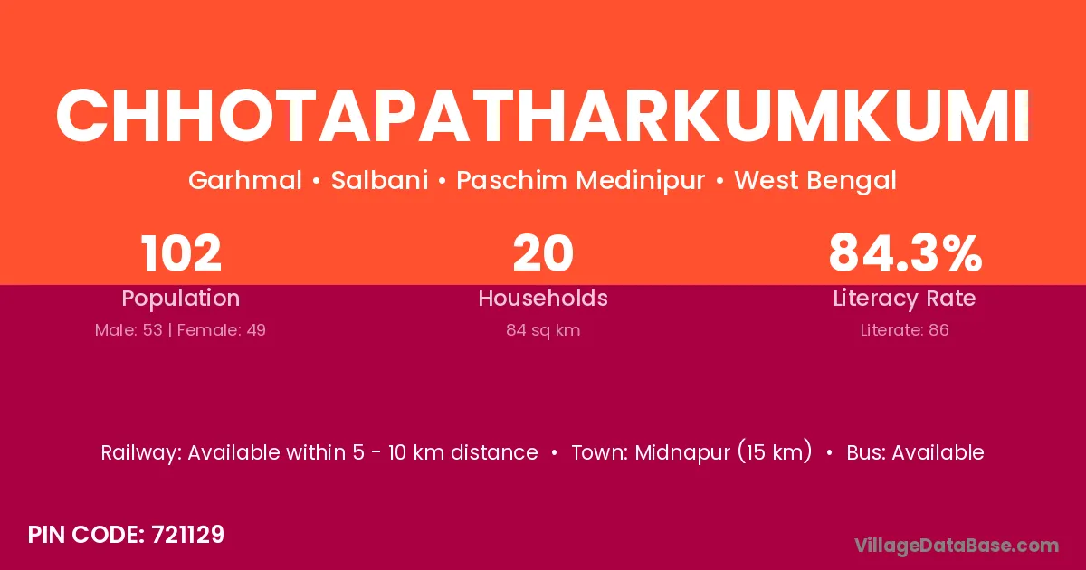 Midnapur (15 km) is the nearest town to Chhotapatharkumkumi village for major economic activities and is located approximately 15 km away.