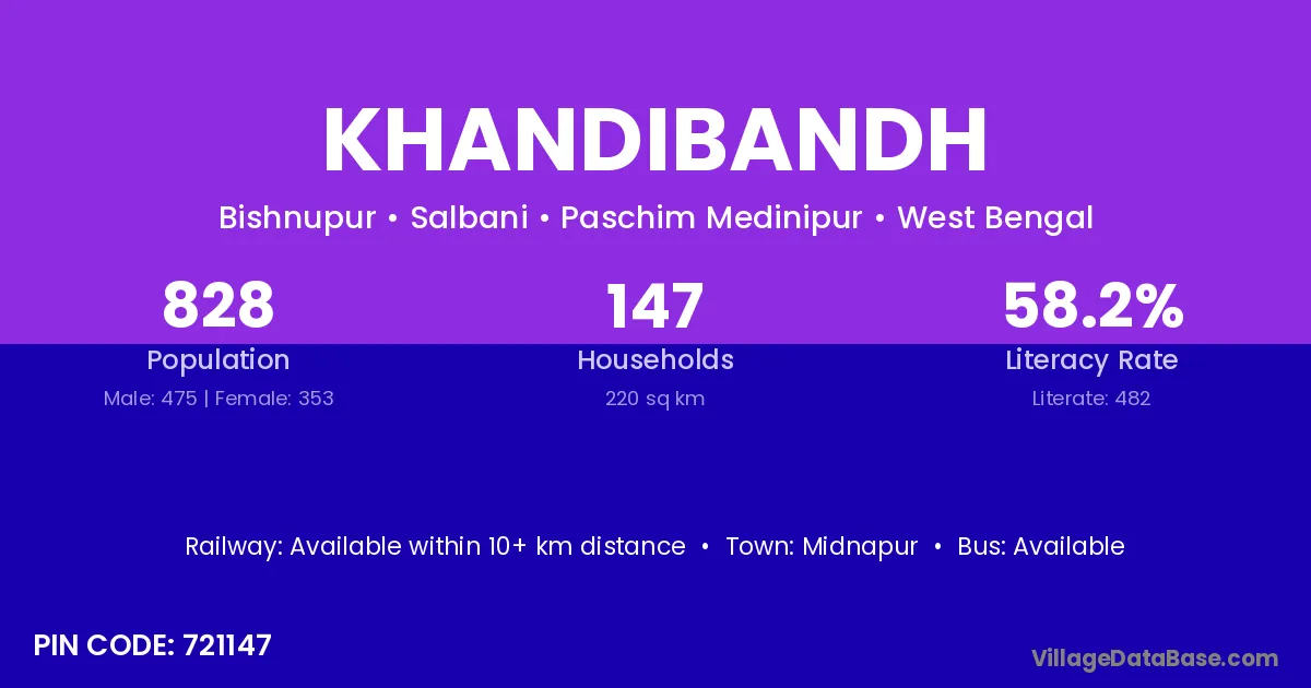 According to Census 2011 information, the village code of Khandibandh village is 721147.