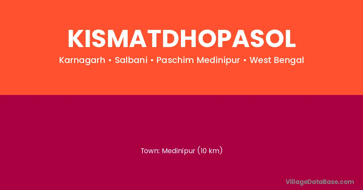 Medinipur (10 km) is the nearest town to Kismatdhopasol village for major economic activities and is located approximately 10 km away.