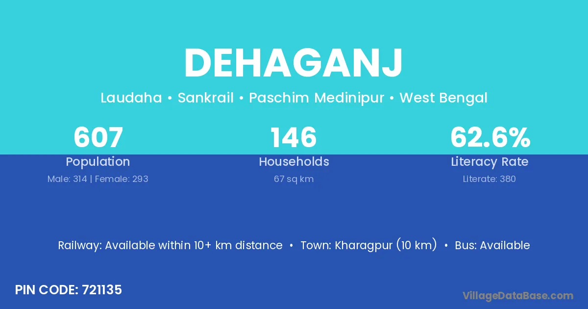 Kharagpur (10 km) is the nearest town to Dehaganj village for major economic activities and is located approximately 10 km away.