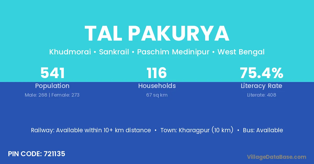 Tal Pakurya village is located in the Sankrail Subdivision of the Paschim Medinipur district in West Bengal .