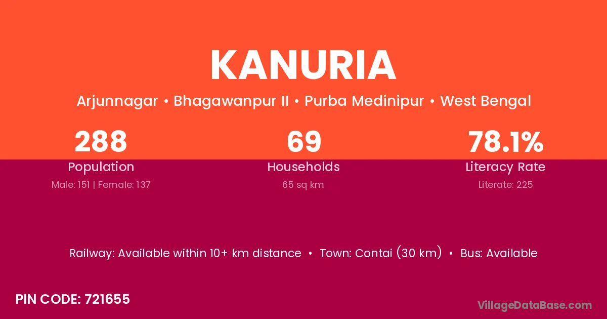 Contai (30 km) is the nearest town to Kanuria village for major economic activities and is located approximately 30 km away.