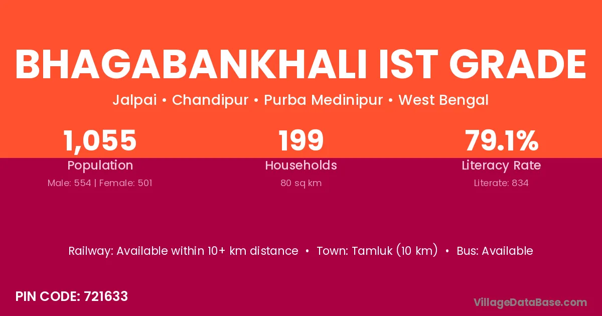 Tamluk (10 km) is the nearest town to Bhagabankhali Ist Grade village for major economic activities and is located approximately 10 km away.