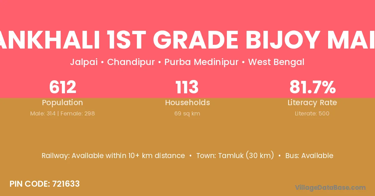 Tamluk (30 km) is the nearest town to Bhagabankhali 1st Grade Bijoy Maitir Chak village for major economic activities and is located approximately 30 km away.