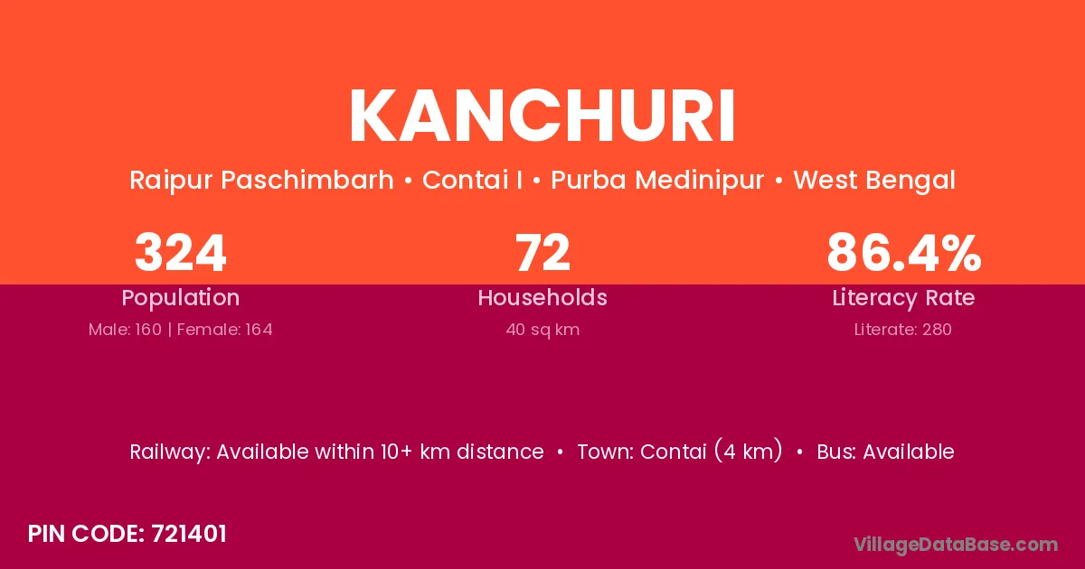Contai (4 km) is the nearest town to Kanchuri village for major economic activities and is located approximately 4 km away.