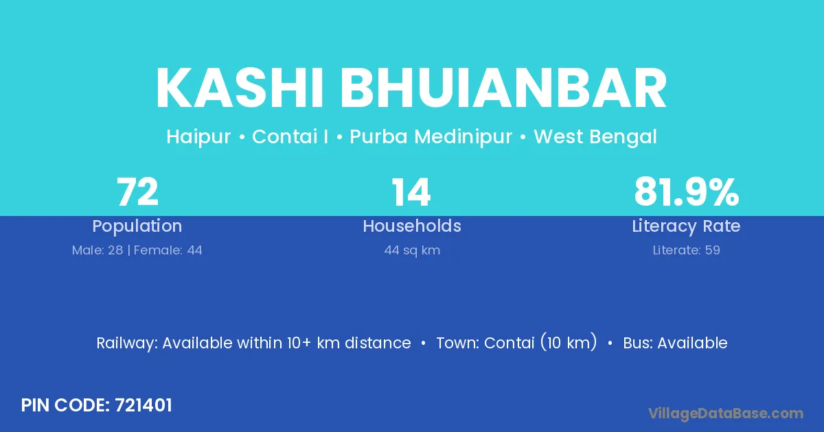 Contai (10 km) is the nearest town to Kashi Bhuianbar village for major economic activities and is located approximately 10 km away.