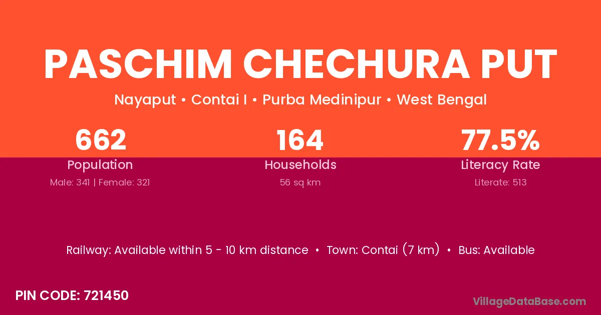 Contai (7 km) is the nearest town to Paschim Chechura Put village for major economic activities and is located approximately 7 km away.