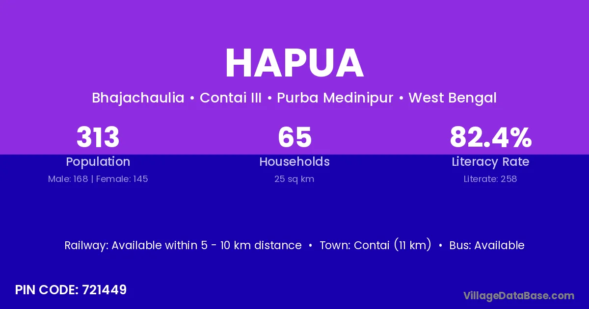 Hapua village is located in the Contai III Subdivision of the Purba Medinipur district in West Bengal.