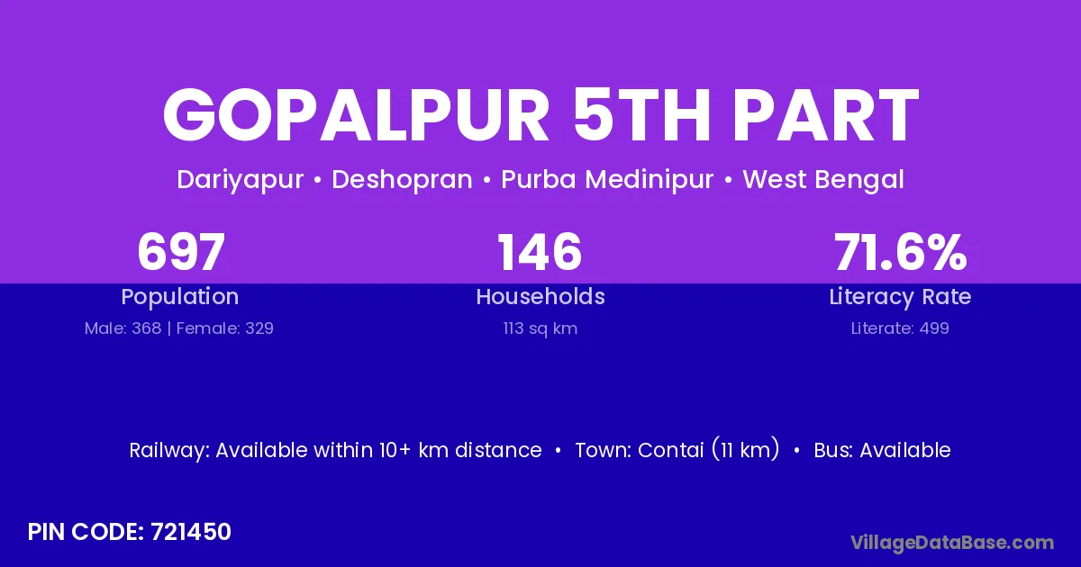 Gopalpur 5th Part village is located in the Deshopran Subdivision of the Purba Medinipur district in West Bengal .