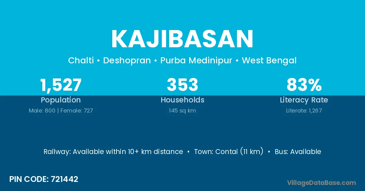 Contai (11 km) is the nearest town to Kajibasan village for major economic activities and is located approximately 11 km away.