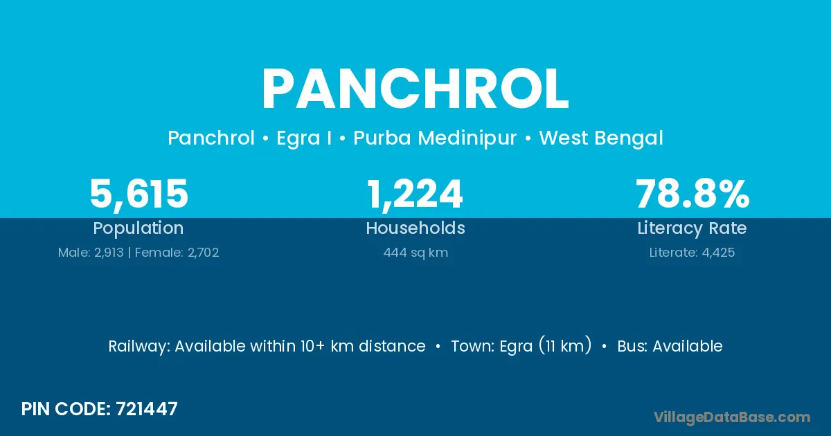 Egra (11 km) is the nearest town to Panchrol village for major economic activities and is located approximately 11 km away.