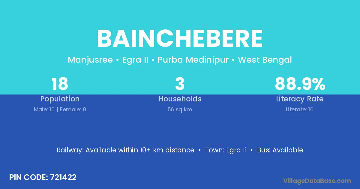 Bainchebere village is located in the Egra II Subdivision of the Purba Medinipur district in West Bengal.