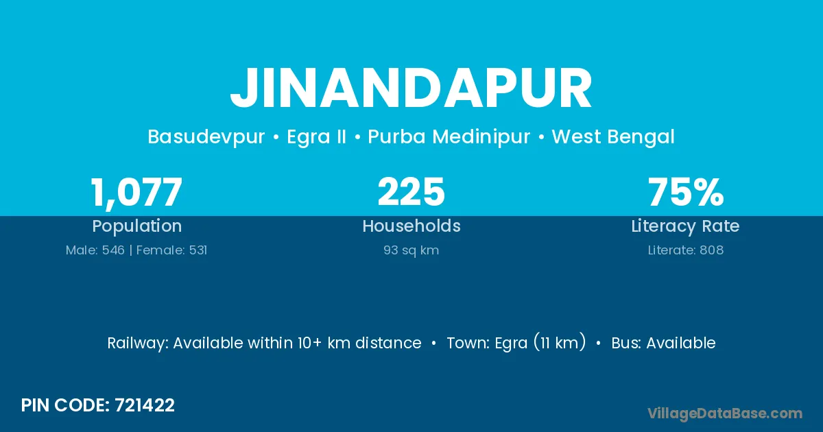 Egra (11 km) is the nearest town to Jinandapur village for major economic activities and is located approximately 11 km away.