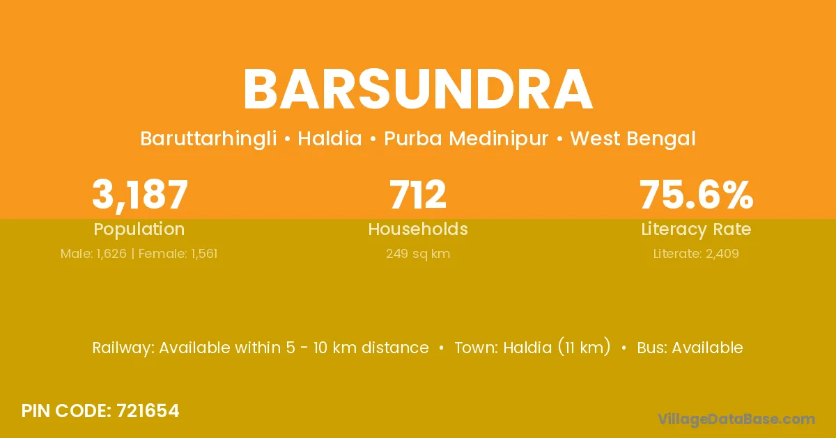 Haldia (11 km) is the nearest town to Barsundra village for major economic activities and is located approximately 11 km away.