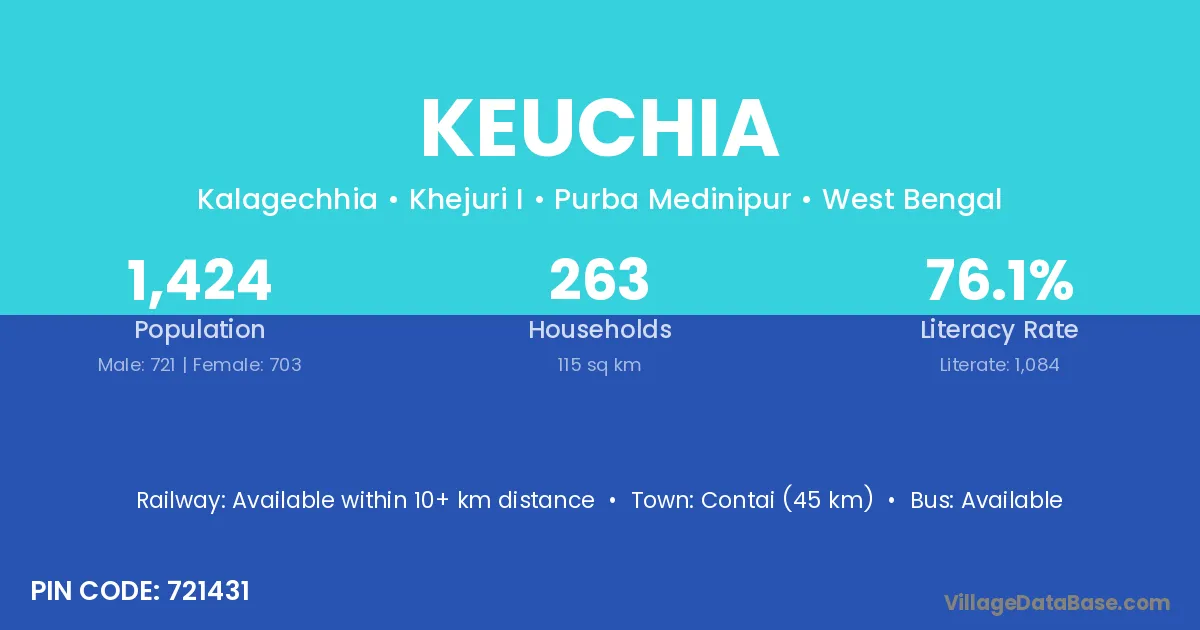 Keuchia village is located in the Khejuri I Subdivision of the Purba Medinipur district in West Bengal.