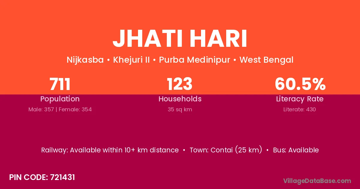 Jhati Hari village is located in the Khejuri II Subdivision of the Purba Medinipur district in West Bengal.