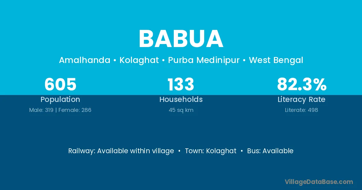 Babua village is located in the Kolaghat Subdivision of the Purba Medinipur district in West Bengal .