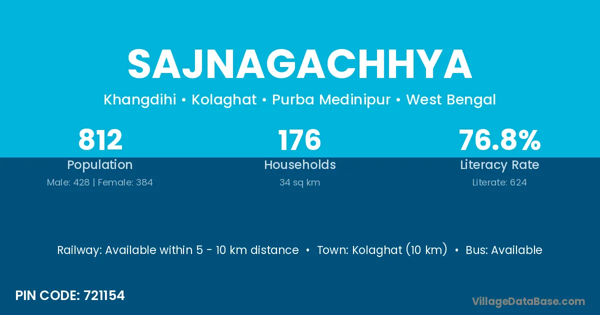 Kolaghat (10 km) is the nearest town to Sajnagachhya village for major economic activities and is located approximately 10 km away.