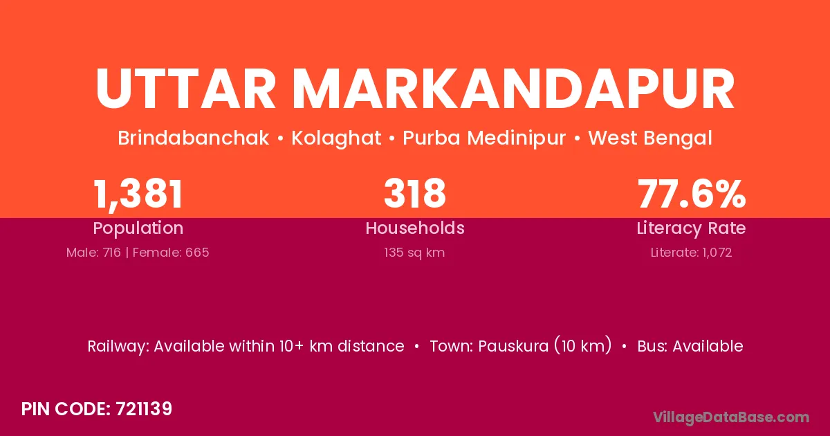 Uttar Markandapur village has a total population of 1,381 people, of which 716 are males and 665 are females.
