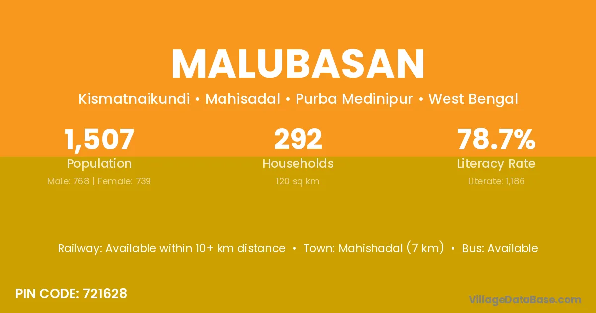 Mahishadal (7 km) is the nearest town to Malubasan village for major economic activities and is located approximately 7 km away.