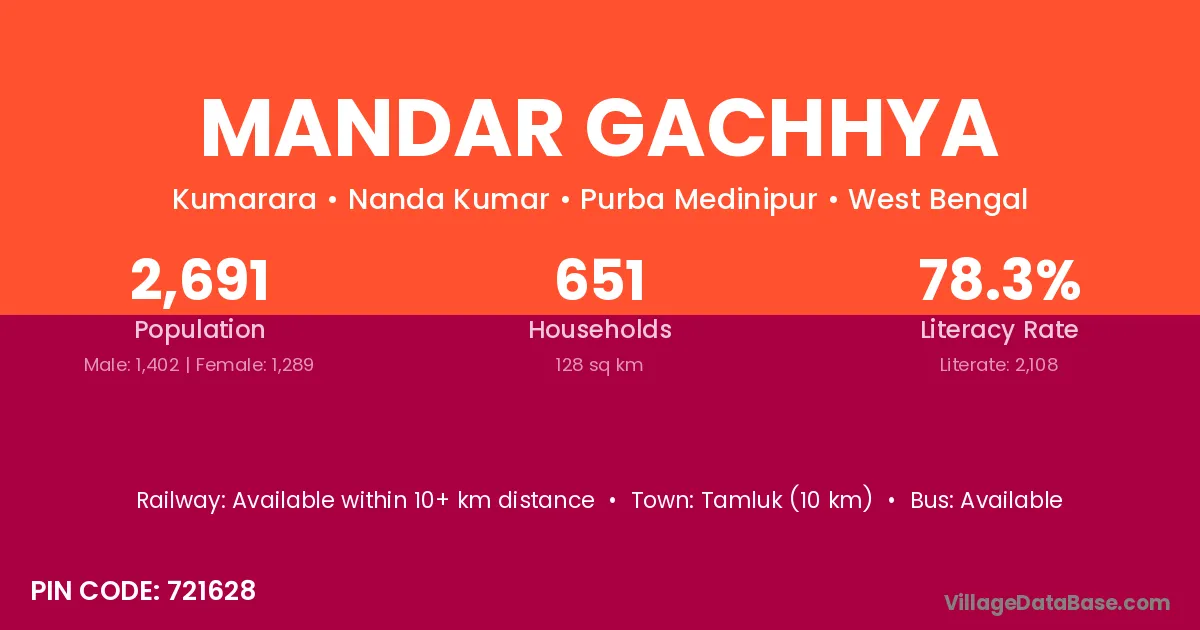 Mandar Gachhya village is located in the Nanda Kumar Subdivision of the Purba Medinipur district in West Bengal.