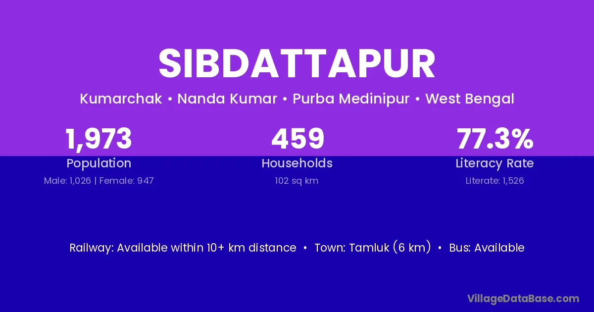 Tamluk (6 km) is the nearest town to Sibdattapur village for major economic activities and is located approximately 6 km away.