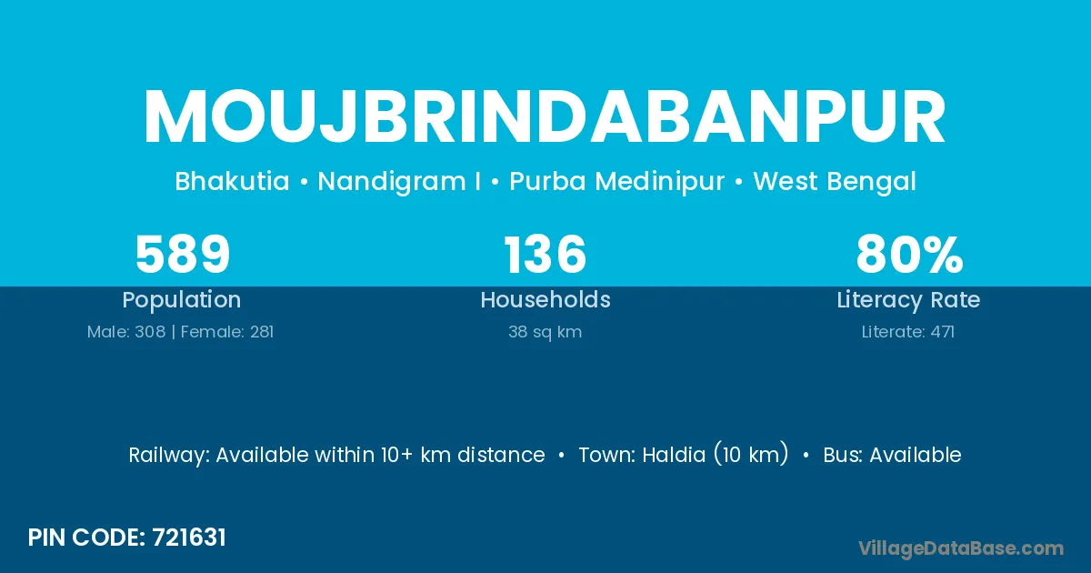 Haldia (10 km) is the nearest town to Moujbrindabanpur village for major economic activities and is located approximately 10 km away.