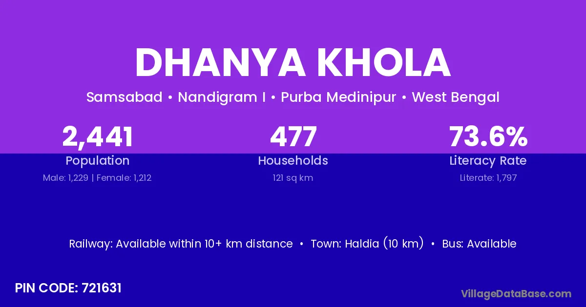 Dhanya Khola village is located in the Nandigram I Subdivision of the Purba Medinipur district in West Bengal .