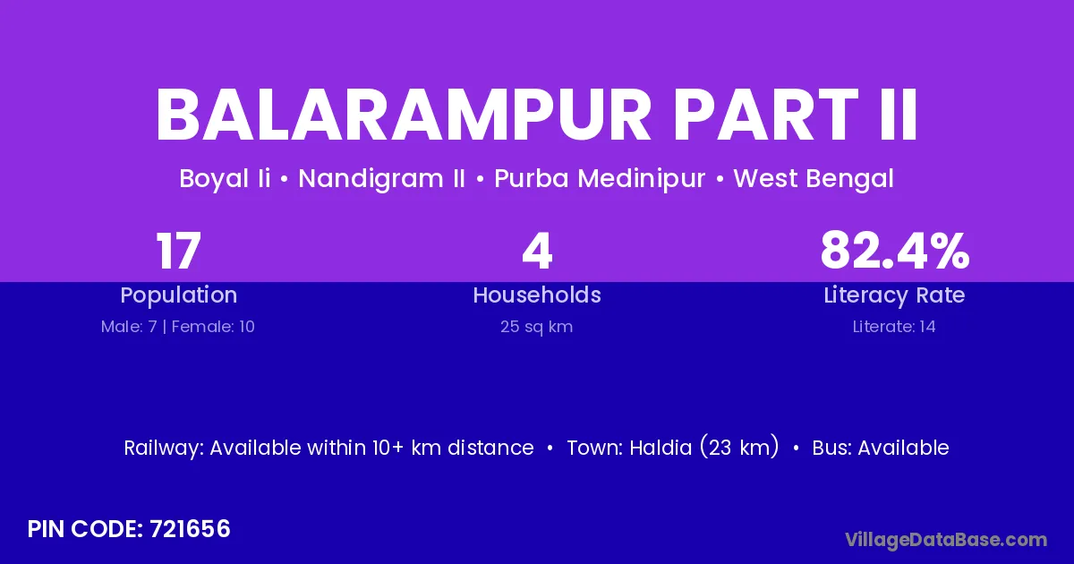 According to Census 2011 information, the village code of Balarampur Part Ii village is 721656.