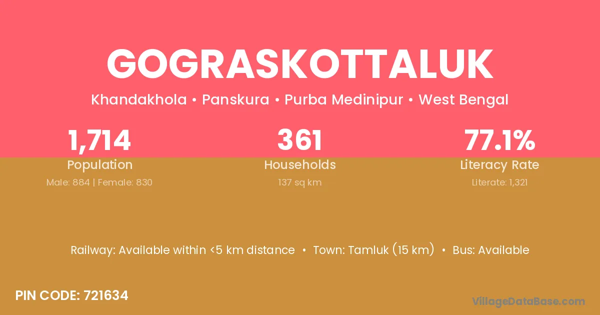 Gograskottaluk village is located in the Panskura Subdivision of the Purba Medinipur district in West Bengal.