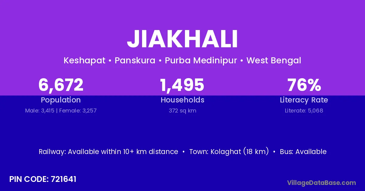 Jiakhali village is located in the Panskura Subdivision of the Purba Medinipur district in West Bengal.
