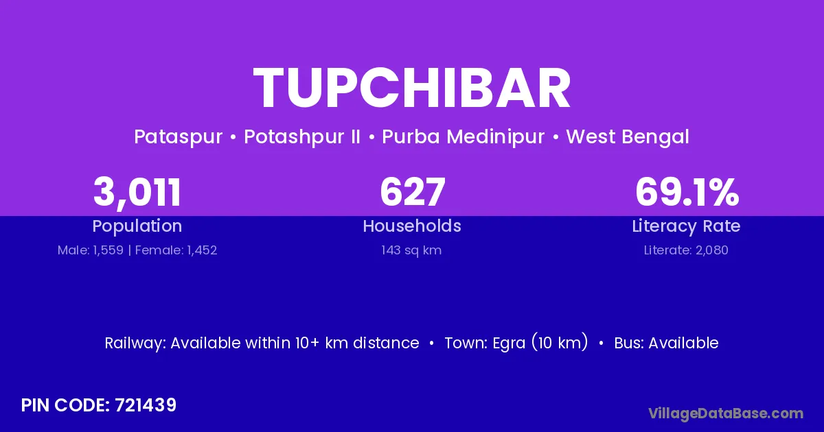 Egra (23 km) is the nearest town to Tupchibar village for major economic activities and is located approximately 23 km away.