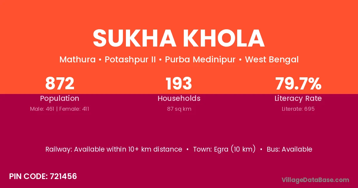 Sukha Khola village is located in the Potashpur II Subdivision of the Purba Medinipur district in West Bengal .