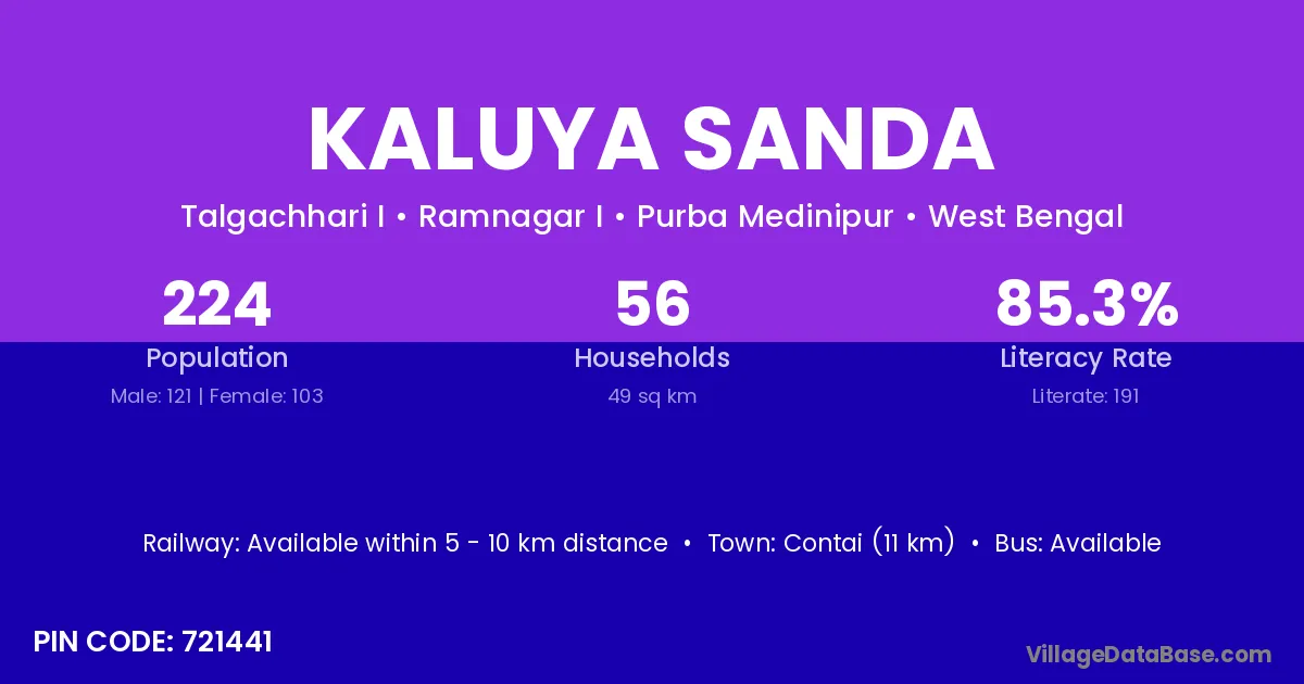 Contai (11 km) is the nearest town to Kaluya Sanda village for major economic activities and is located approximately 11 km away.