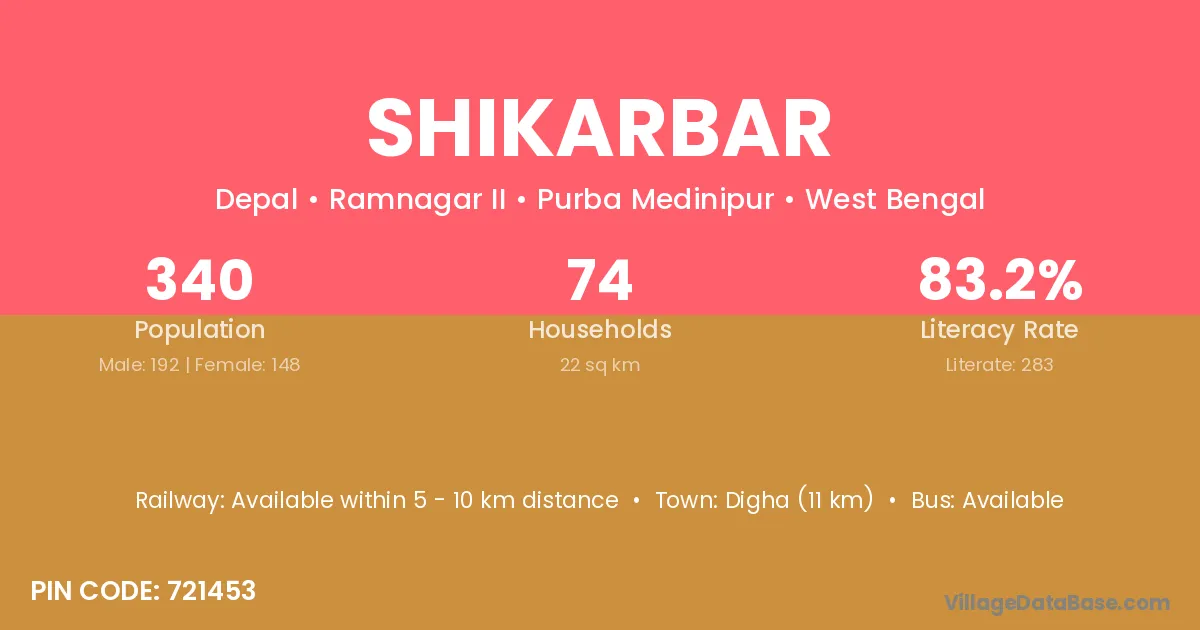 Digha (11 km) is the nearest town to Shikarbar village for major economic activities and is located approximately 11 km away.