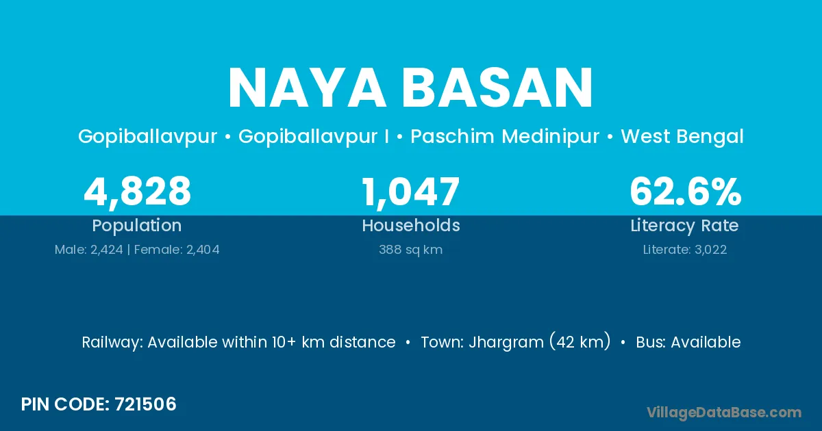 Tamluk (9 km) is the nearest town to Naya Basan village for major economic activities and is located approximately 9 km away.
