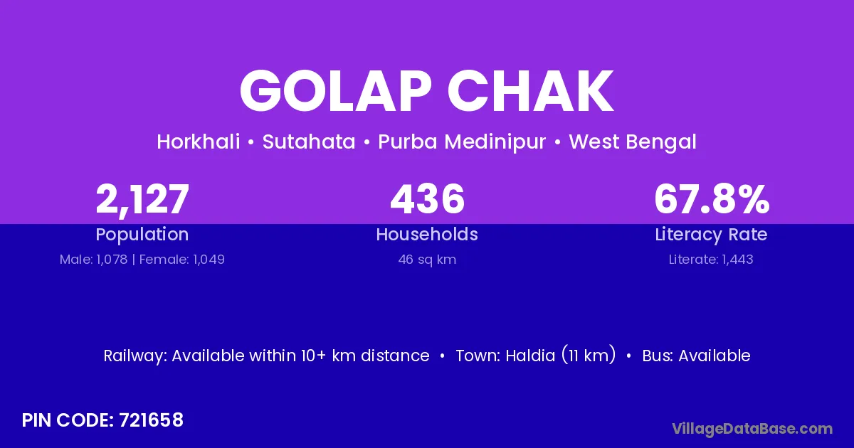 Haldia (11 km) is the nearest town to Golap Chak village for major economic activities and is located approximately 11 km away.