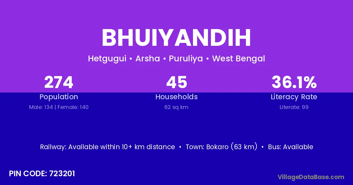 Bhuiyandih village is located in the Arsha Subdivision of the Puruliya district in West Bengal.