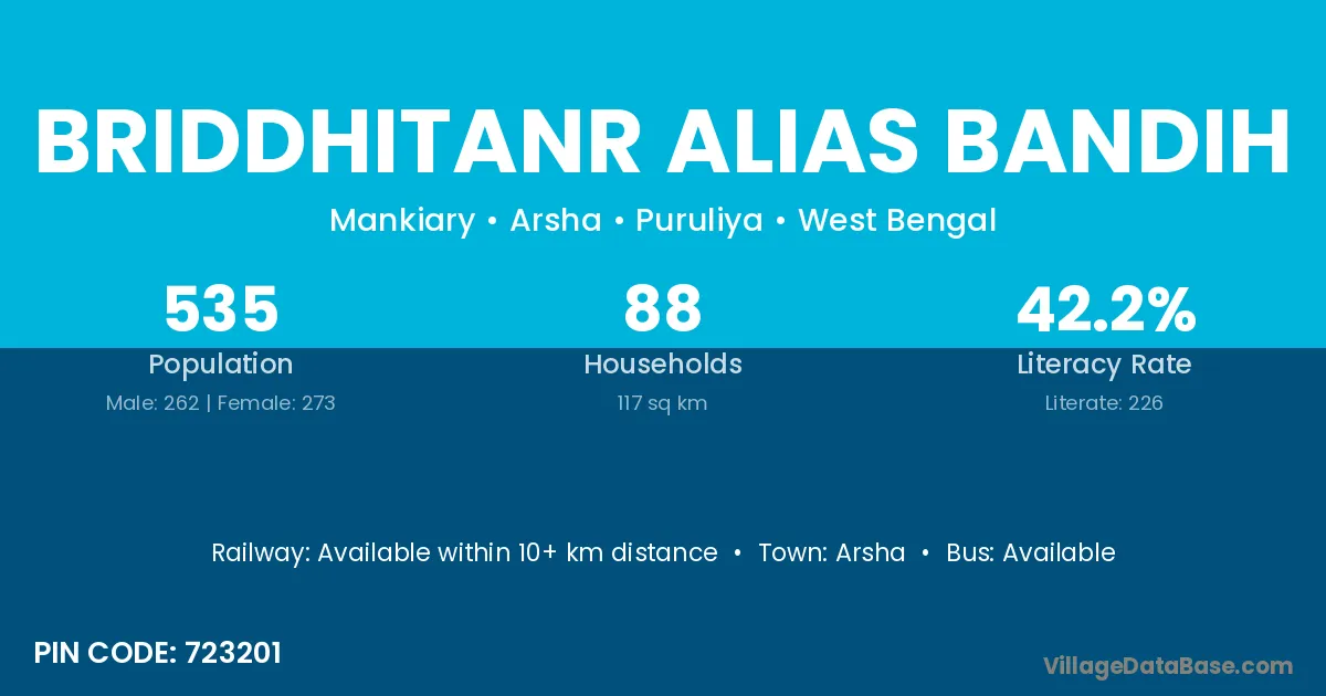 Briddhitanr Alias Bandih village has a total population of 535 people, of which 262 are males and 273 are females.