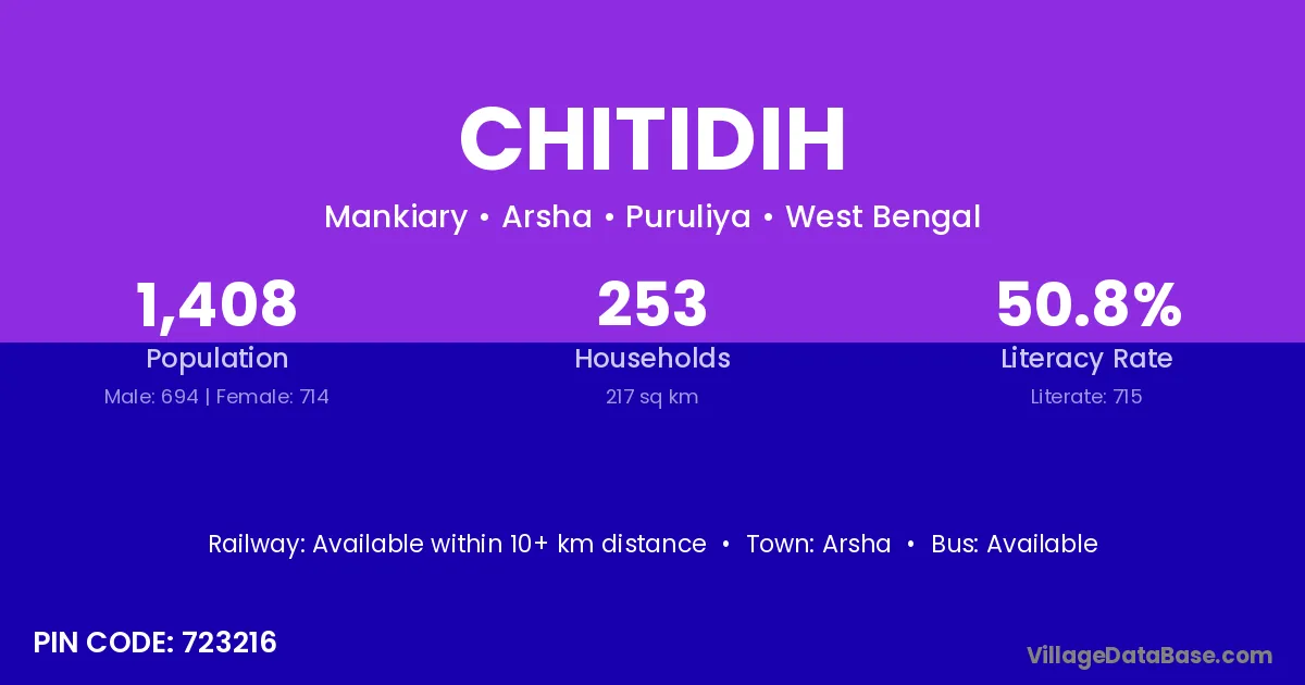 Chitidih village is located in the Arsha Subdivision of the Puruliya district in West Bengal.