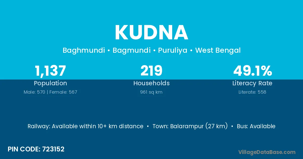 Balarampur (27 km) is the nearest town to Kudna village for major economic activities and is located approximately 27 km away.